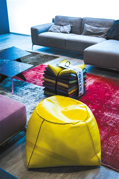 当很多颜色聚集在一起时,黄色总能最先跳出来。在这个拥有红色、蓝色、紫色、灰色等多个颜色的空间里,柠檬黄的小坐墩绝对是空间里的“开心果”。和其他家具四平八稳“正襟危坐”相比,小坐墩又被称为懒人沙发,你可以用任何一个姿势在上面,或坐或躺,完全随心。这么一个可爱且随意的小家具使用柠檬黄也是最佳搭配,立刻就能让整个居家空间也灵动活泼起来。