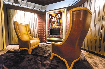 如今金黄色被认为是“土豪”的颜色,其实是黄色厚重的气息带来的沉稳感觉。这个空间里的主角是这对颇有气势的沙发,大地黄的皮面材质,金黄色的边框,棕色的后背,当这些颜色组合在一起时,仪式感油然而生,配之软包、地毯,整个空间装饰奢华,绝对是家中接待重要客人的最佳空间。